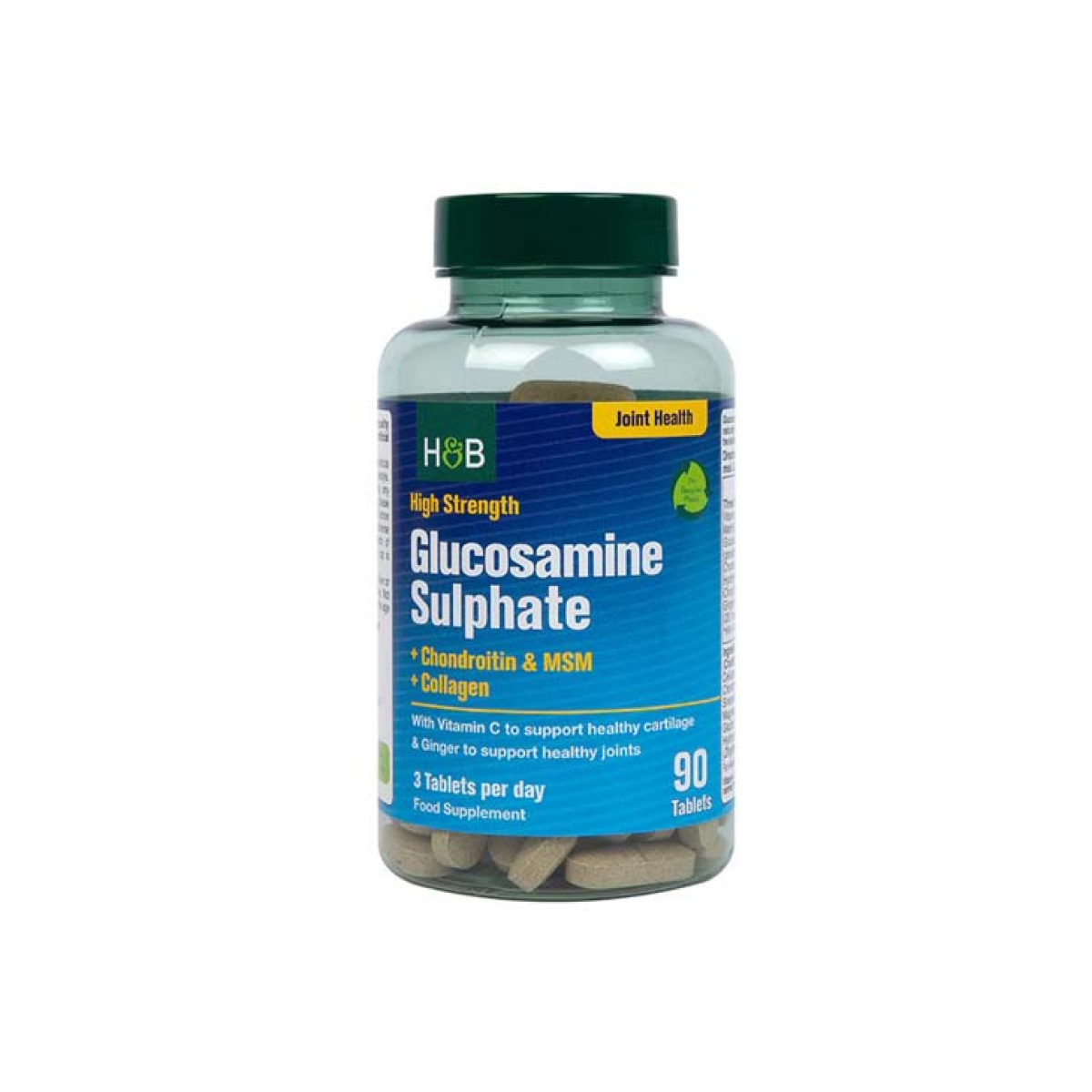Holland & Barrett High Strength Glucosamine & Chondroitin Complex tablets contain a high strength blend of Glucosamine and Chondroitin with MSM. Glucosamine and Chondroitin are naturally found in the joints of the body. Glucosamine is a building block of cartilage and joint tissue. It is the basis of the synthesis of several important macromolecules including glycoproteins, glycolipids, and glycosaminoglycans. These macromolecules can be found in the synovial fluid, cartilage, tendons, ligaments, and muscles. Chondroitin is the tough connective tissue within joints. MSM is a natural form of organic sulfur one of the major building blocks of glycosaminoglycans.Please consult a medical professional if you are taking any other medication before using this dietary supplement. Use this product before the indicated expiry date