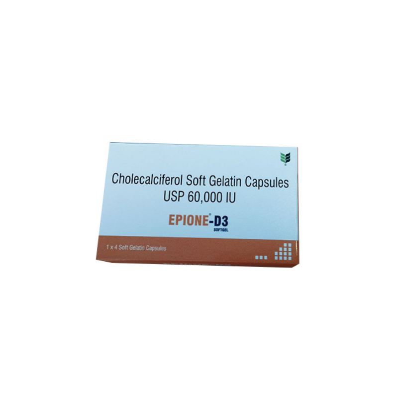 Epione D3 is a vitamin supplement. It contains Vitamin D3 as an active ingredient which is also known as cholecalciferol or colecalciferol. Vitamin D is an essential component for the absorpti
